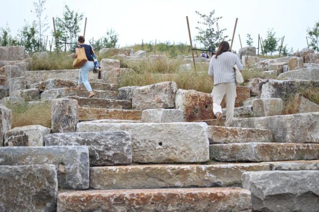 該項目的鋪裝道路周邊裝飾有白石,作為“眼線”,突出坡道和綠草。這些步行道中還鋪設有回收來的花崗巖石塊,它們之前是海島防浪堤,已有100多年了。(由于該項目,建筑師摧毀了約1.7米的防浪堤提升彈性。)