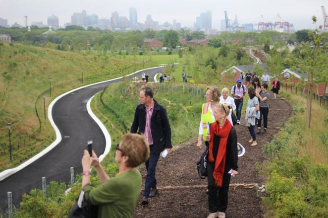 在Outlook Hill的頂端更能清楚地了解到該項目的目標,它比該島高出21米(70英尺),更能全面地觀賞到自由女神像以及曼哈頓天際線、澤西城和布魯克林。